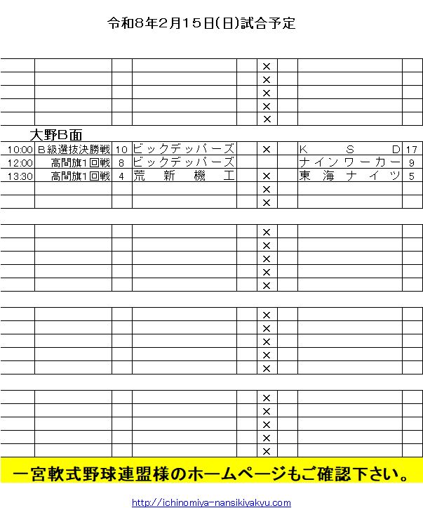 令和8年2月15日(日)試合予定